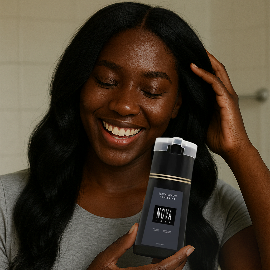 Most hair dyes are packed with harsh chemicals ammonia, parabens, peroxide that damage your hair and scalp over time. NovaHair™ is different. Skip the salon, mess, and damage while effortlessly covering roots, fading tones, and stubborn grays. Our plant-based 3-in-1 formula colors, cleanses, and conditions in one simple step, leaving your hair naturally vibrant, soft, and healthy